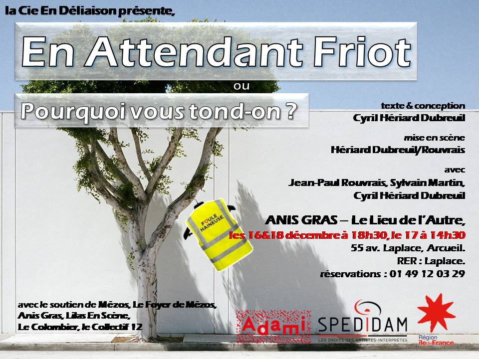 La Compagnie en Déliaison est heureuse de vous faire part du déconfinement de son nouveau spectacle “En Attendant Friot”, enfin déconfiné ! et qui sera fraîchement démoulé dès le 16 décembre !